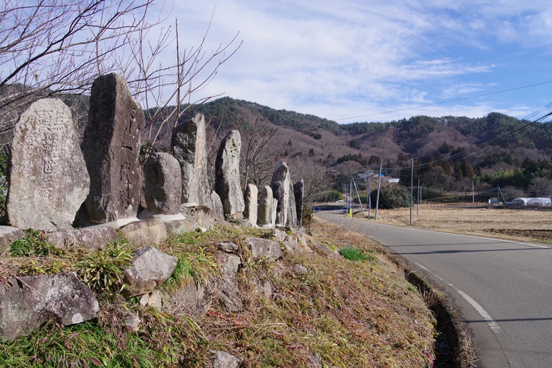 石倉地区や上滝地区の道沿いには、一代塔などの多くの古碑が見られ、古碑街道とよばれています。歴史に興味のある方におすすめの散策コースとなっています。