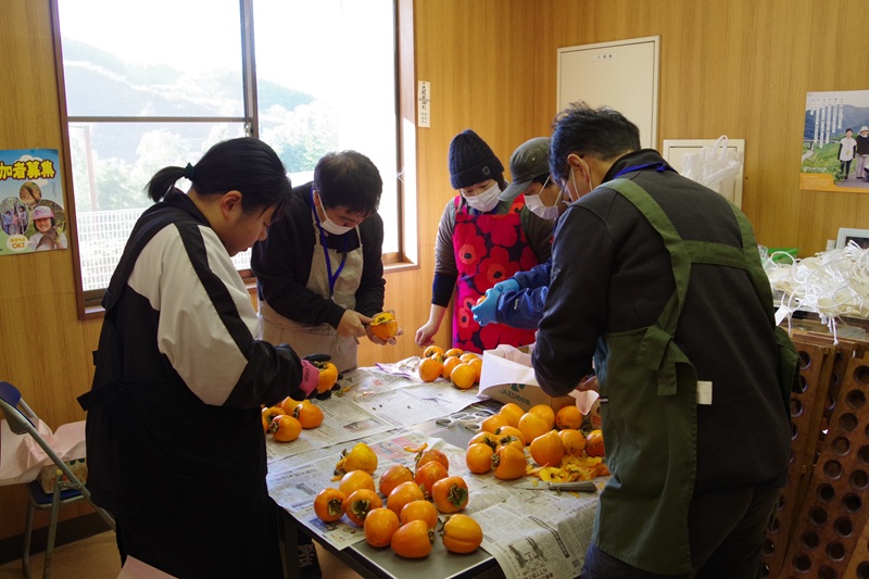 開催時間より早く集合して頂き、開始前の受入の準備、作業中の柿むきのお手伝いや柿の運搬などにお力添えを頂きました。