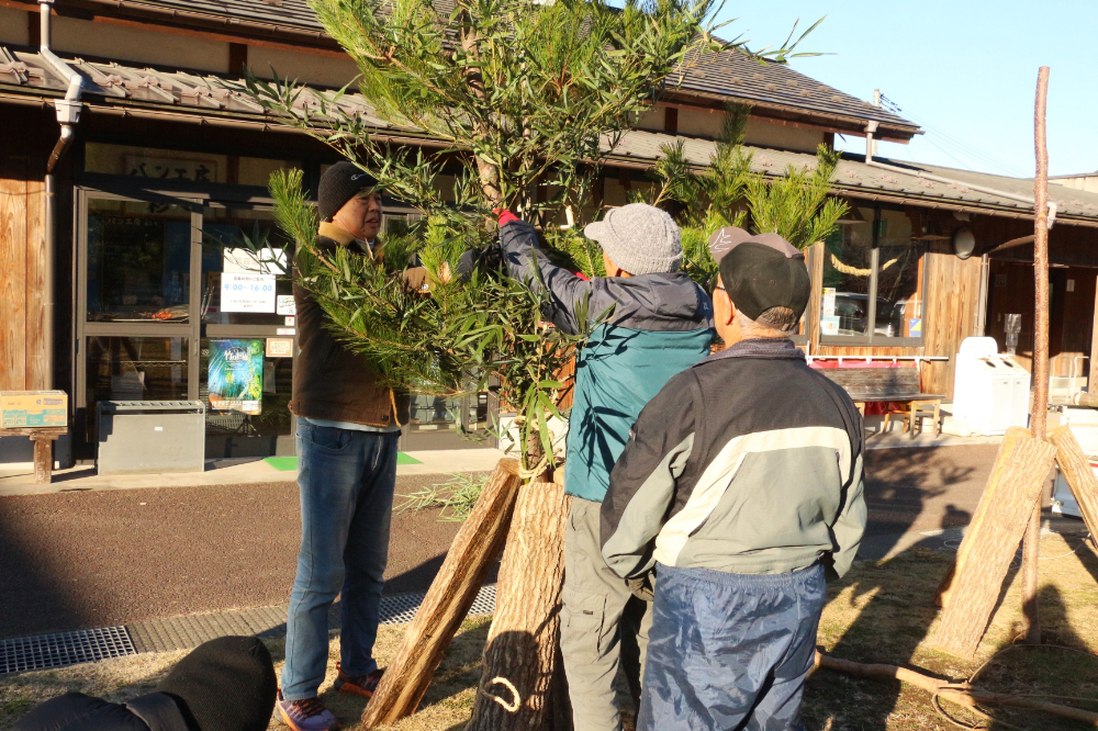 松、笹竹、ケヤキ、クヌギなどの地元材を使って