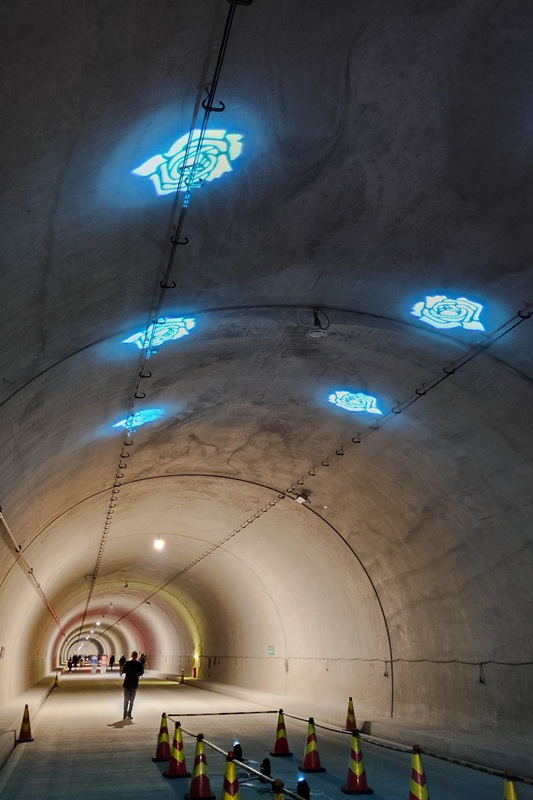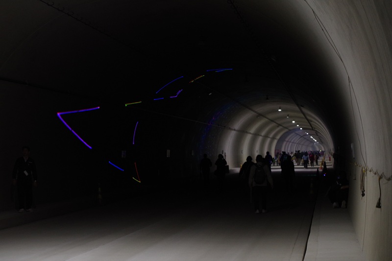 出来たての真新しさと、まだ道路整備されていない路面がいつもと違う雰囲気のトンネル構内。