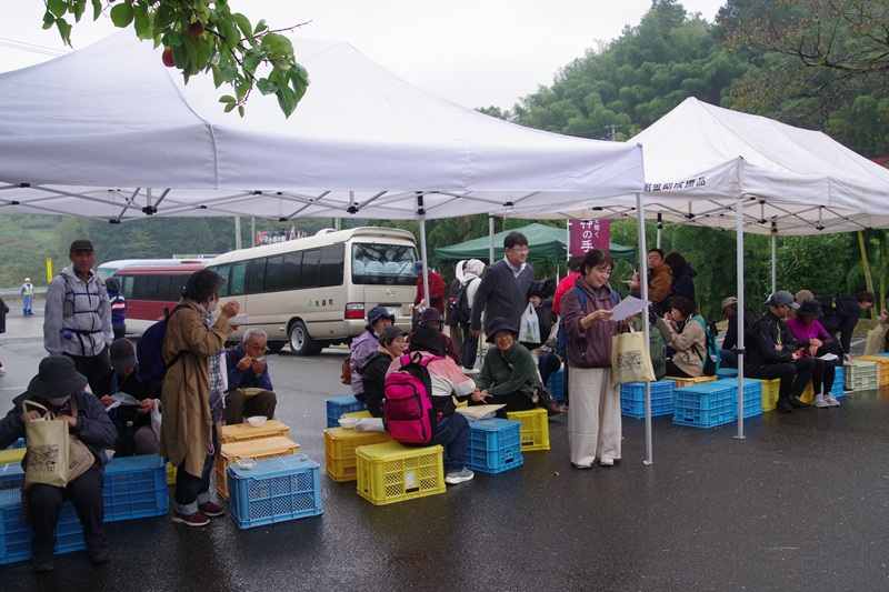 先頭からだいぶ引き離されたであろう私は途中で引き返し、ゴールのやしまやさんへ移動したところ、皆さますでにゴールされており、お振舞いの豚汁とおにぎりタイムを堪能されていました。