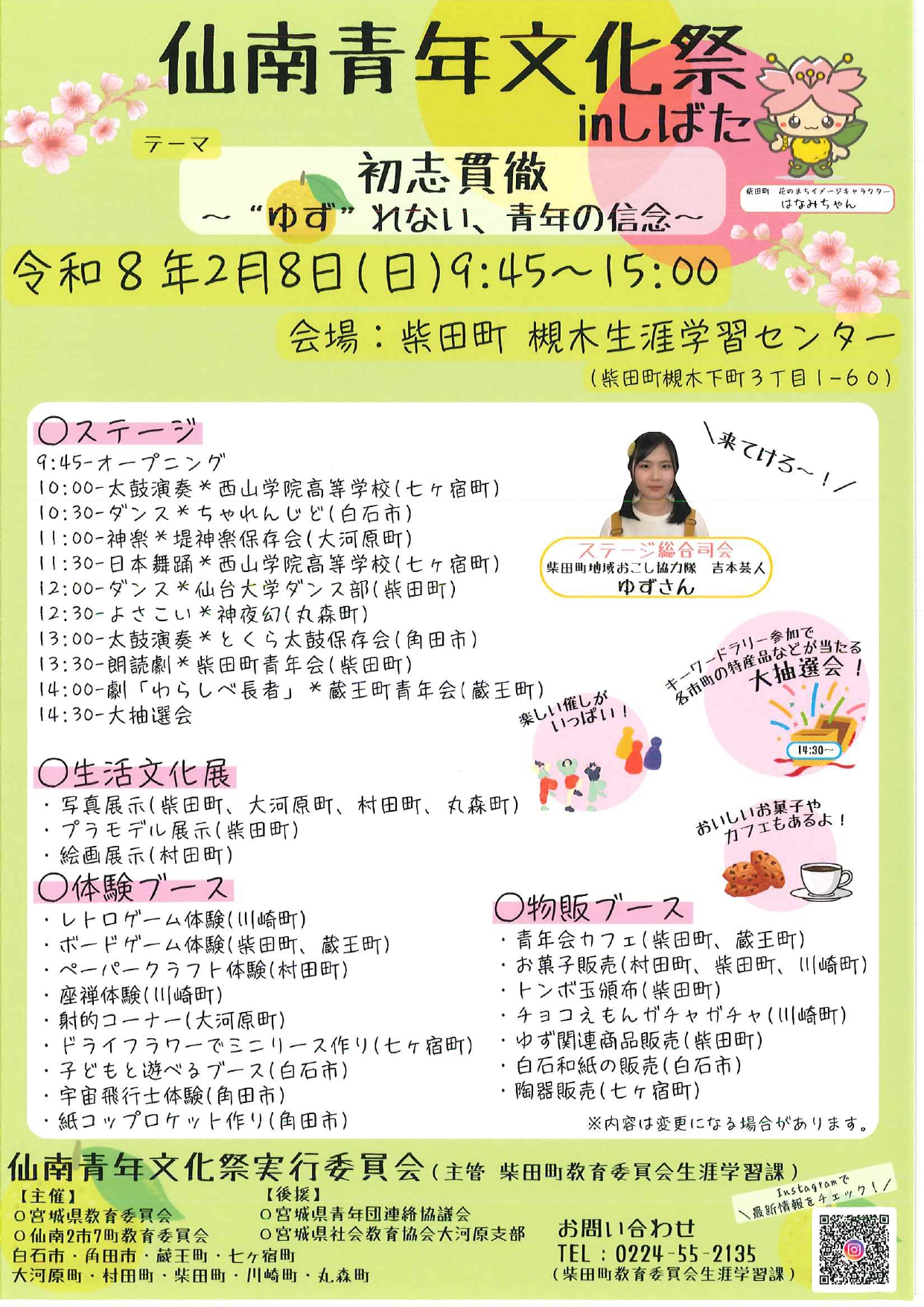 2月8日(日)柴田町を会場に、「仙南青年文化祭」が開催されます。