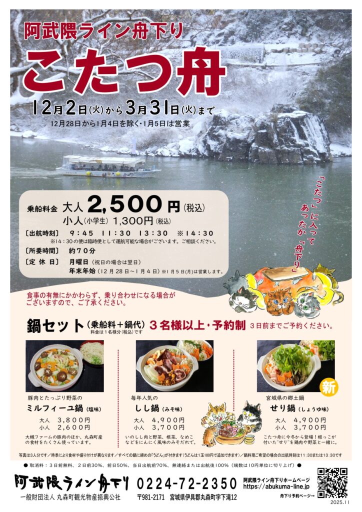 毎年大好評の「こたつ舟」を12月から来年3月末まで期間限定で運航します!